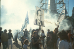 Las Madres de los Desaparecidos: Thursday, Dec. 6th, marked the annual demonstration in the Plaza de Mayo, of the supporters of the ‘movement’ to find the truth about the disappearance of thousands of Argentine civilians during the brutal regimes of the mid-1970s. Hundreds of photographs hung from a high scaffolding; marchers with bull-horns and banners; elderly women wearing the traditional tri-corner white head scarf; smoke bombs; poised riot police; and people of all ages and backgrounds milling about or marching in solidarity, filled the air with pungent sadness and rebelliousness.