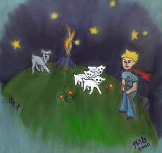 Those of you who have read "Le Petit Prince" (The Little Prince) by Antoine de Saint-ExupÈry (known to his friends as "St. Ex") should remember that the Prince asked St. Ex to draw him a sheep that he could take home to his asteroid to do weed control for him, eating seedling baobab trees. St. Ex had some trouble coming up with a drawing to satisfy the Prince, so finally drew a crate and said "the sheep you want is inside." Thus we do not know if the sheep might have been a pregnant ewe. If she were to have given birth to twin ewe lambs, then the Prince soon has a flock and needs a herding dog. (If she were to have given birth to a male lamb, what a disaster : the tiny asteroid would soon be over-run with sheep !)